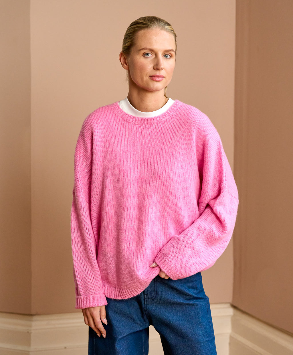 The Sara Sweater is crafted from a soft mohair mix, offering lightness with warmth. Its relaxed silhouette and dropped shoulders create an effortlessly modern shape. Delicate texture and natural drape make it perfect for layering or wearing solo. A refined knit that brings ease, comfort, and timeless femininity to your wardrobe.