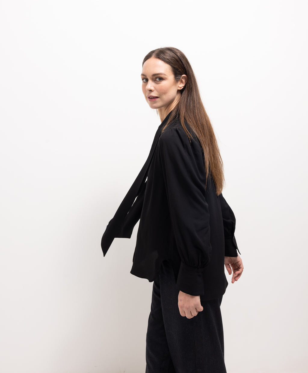 The Darcy Shirt is an effortless wardrobe staple, cut from fluid poly banana crepe for beautiful movement and ease. Finished with a soft necktie detail, it styles seamlessly with denim or tailored separates for everyday wear.