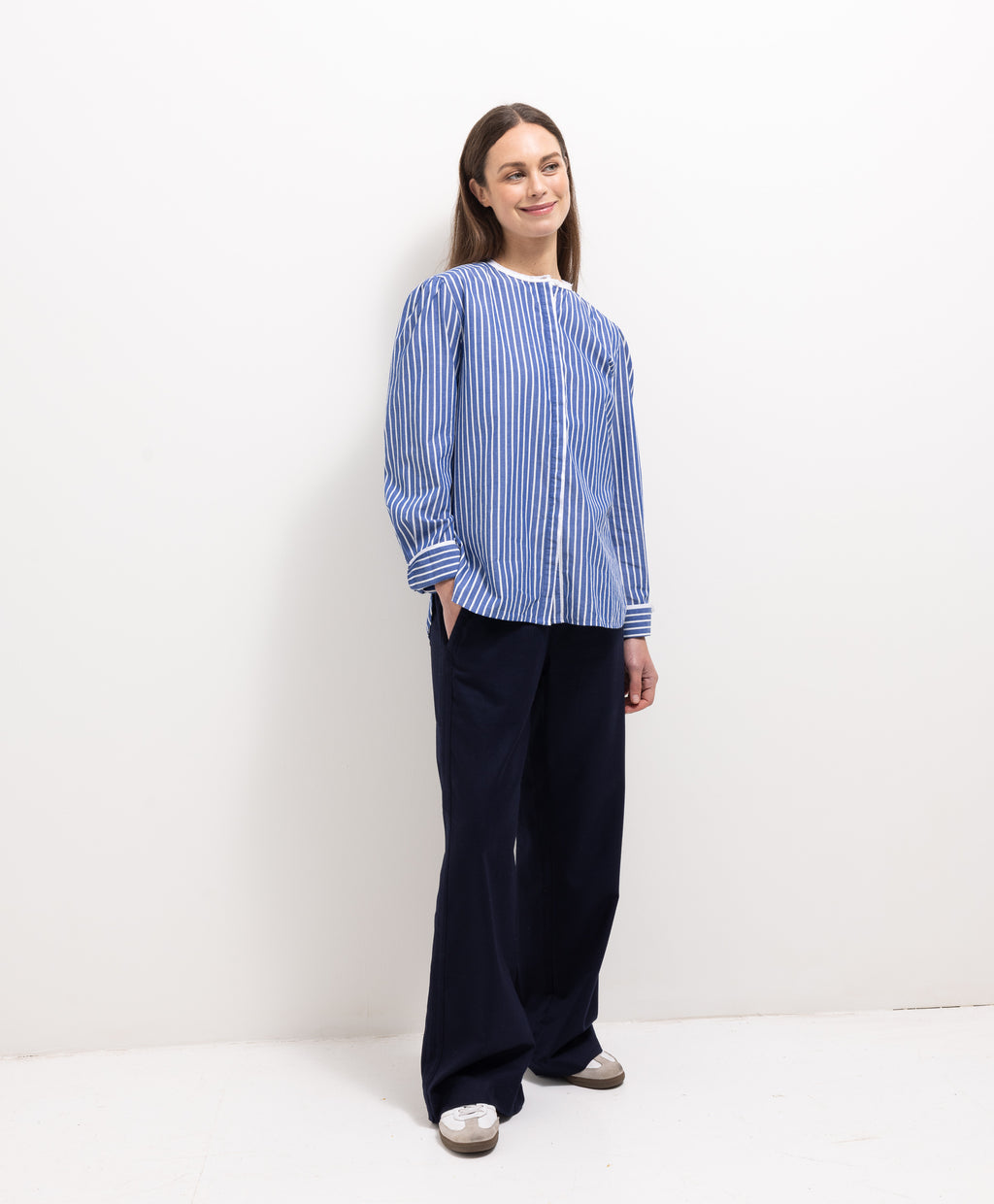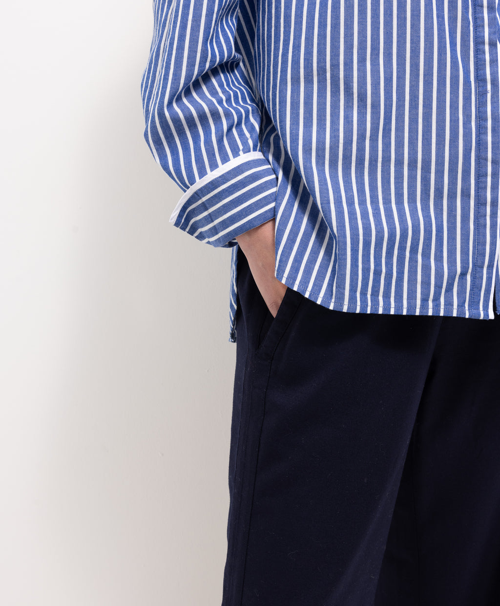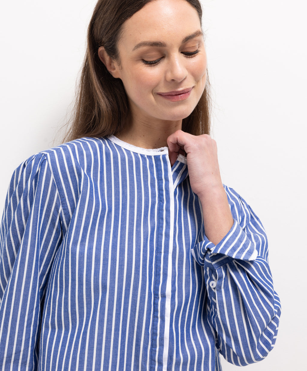 Crafted from soft cotton, the Frayed Shirt is a modern take on a classic stripe. Designed with a relaxed silhouette and subtle frayed detailing, it brings an effortless, lived-in feel to everyday dressing. Lightweight and easy to wear, it layers beautifully or stands alone for understated style.