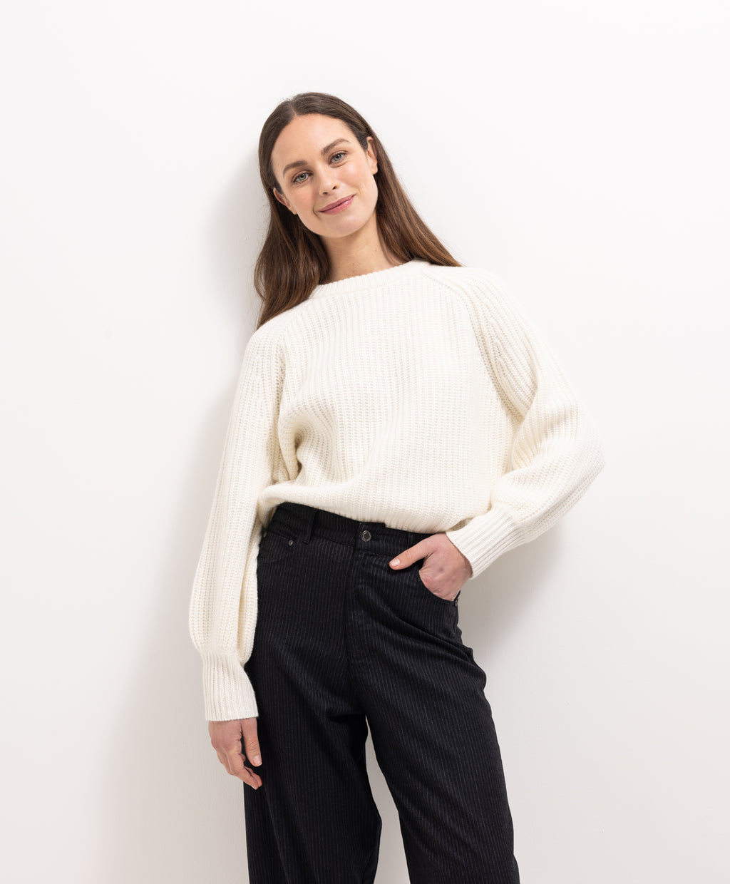 The Whitney Sweater is crafted from 100% merino wool, offering natural softness and warmth. Its relaxed silhouette and ribbed texture bring effortless elegance to everyday dressing. Lightweight yet insulating, it’s perfect for layering from autumn through spring.