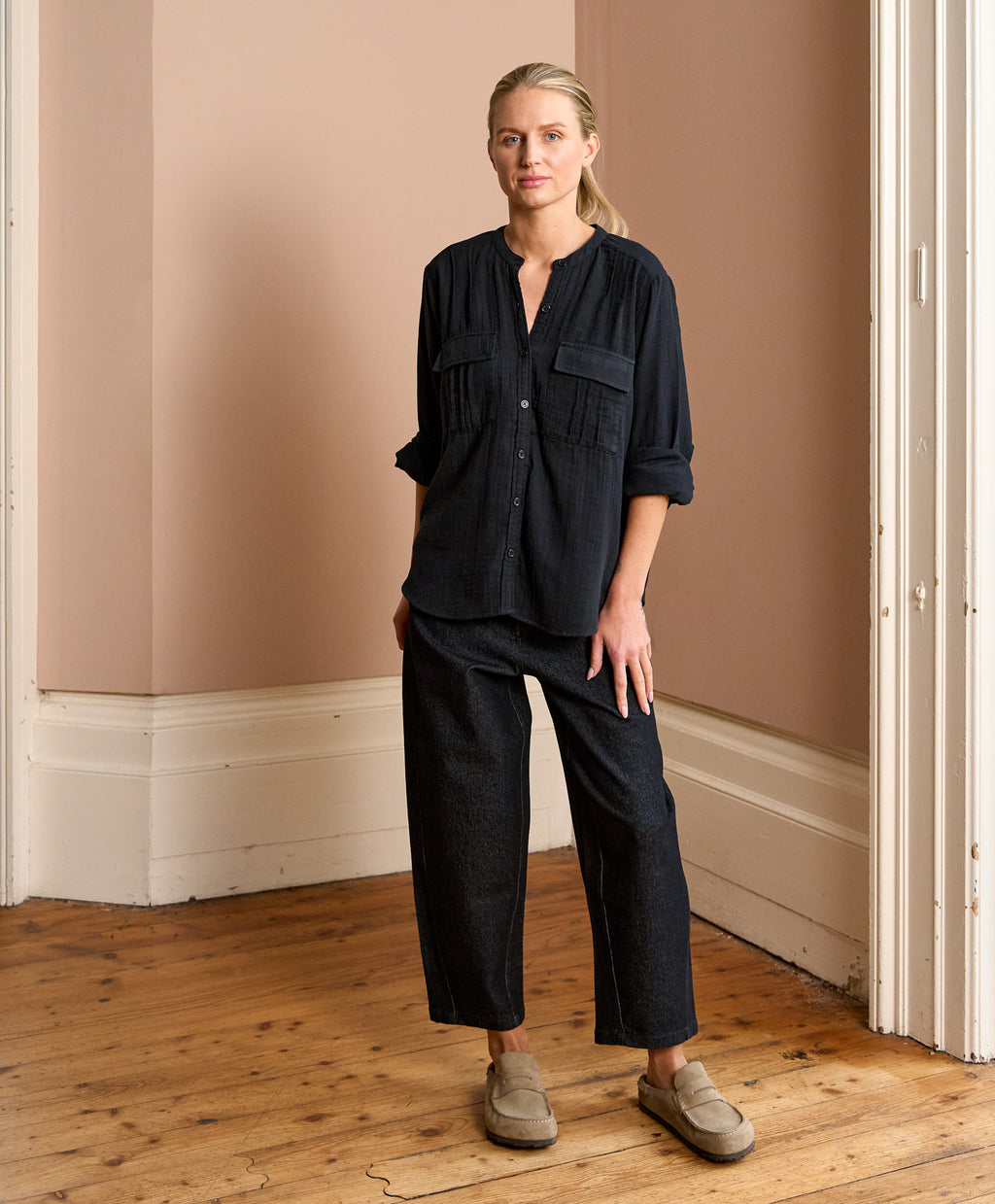 Expertly crafted with structured cotton twill denim, our Barrel Leg Jeans offer both style and comfort. The half elasticated waistband provides flexibility for all-day wear. Complete with front and back pockets, these jeans can be dressed up or down for any occasion. Perfectly pair with a knit or shirt for a relaxed look.