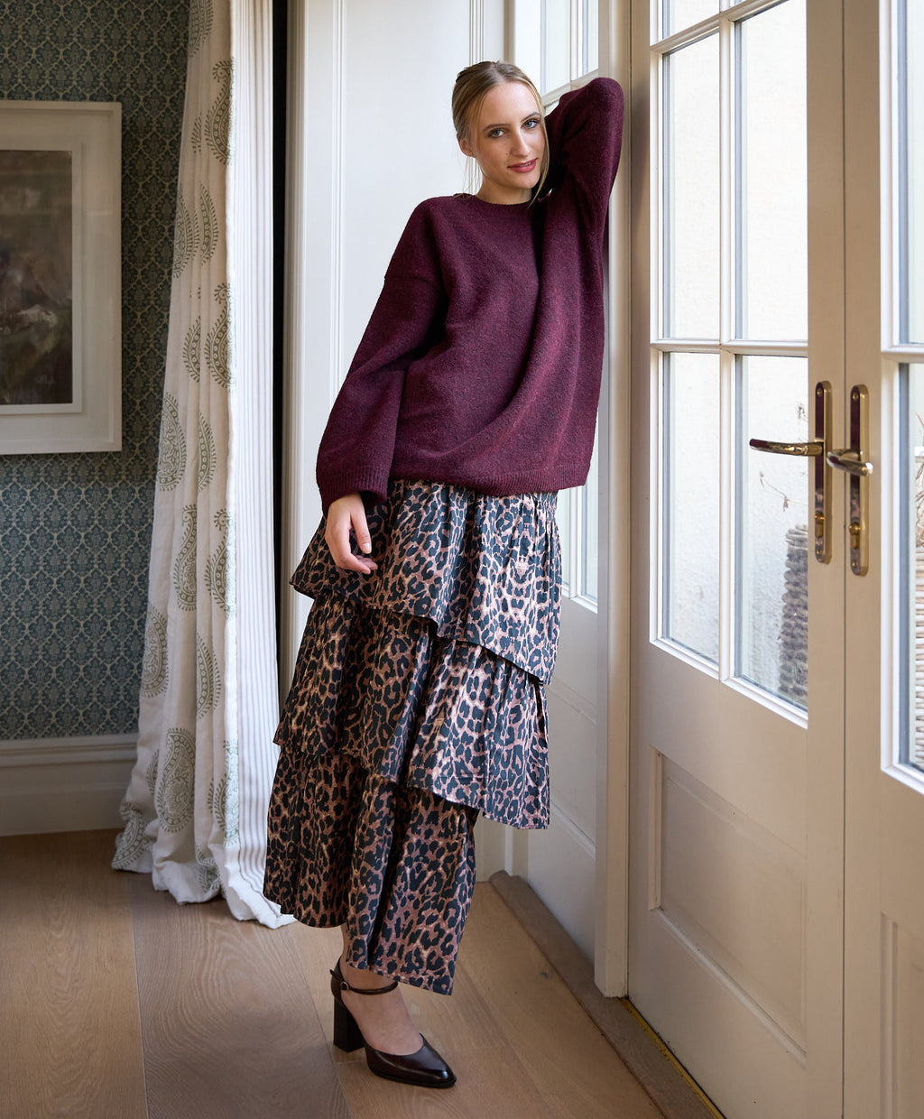 The Kate Skirt is a statement piece that brings movement and personality to everyday dressing. Cut in tiered layers, it falls to a flattering midi length with a soft, fluid drape. The bold leopard print adds a playful edge, while its versatile silhouette works as effortlessly with boots and knitwear as it does with heels for evening. A true wardrobe standout designed to be worn on repeat.