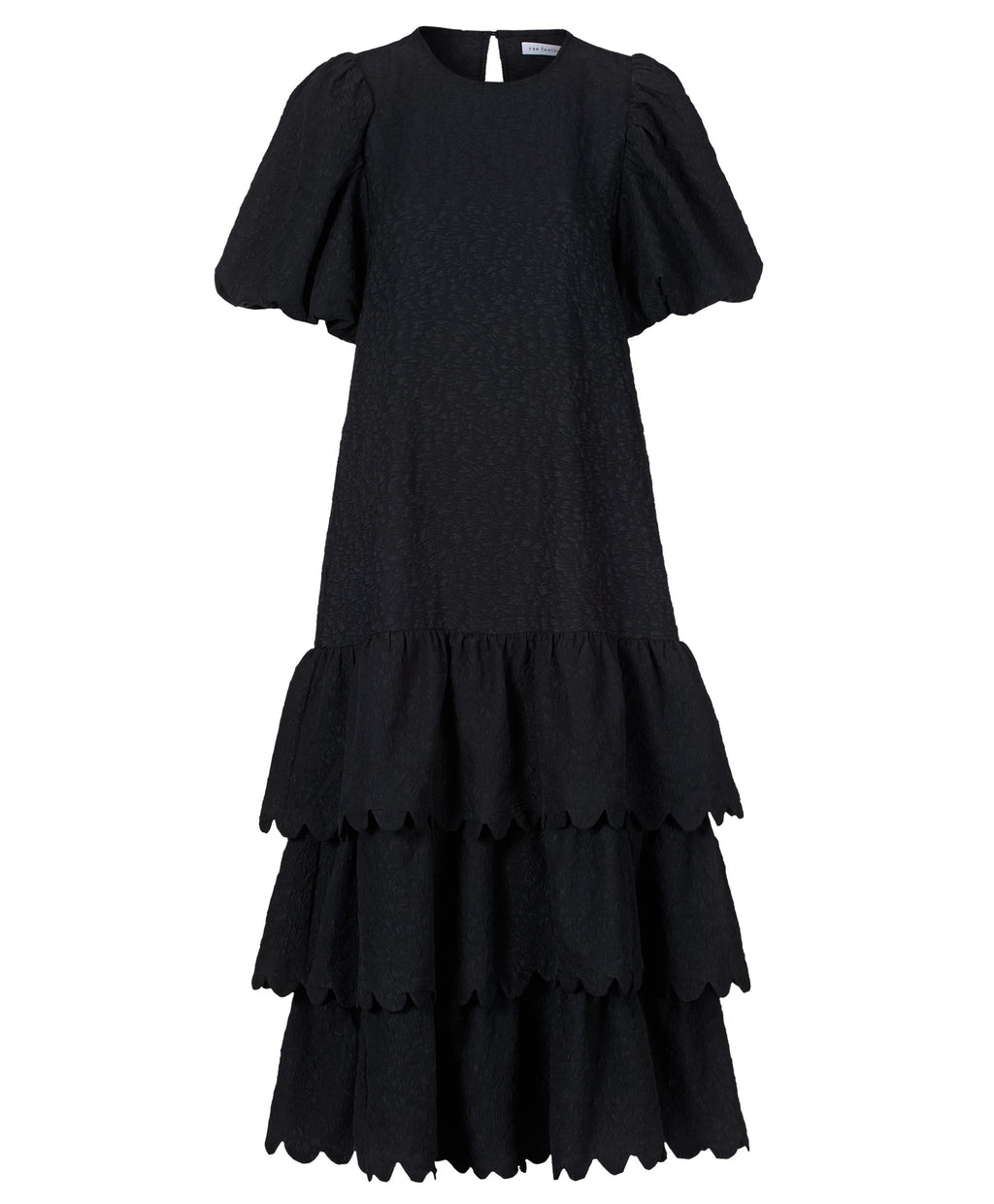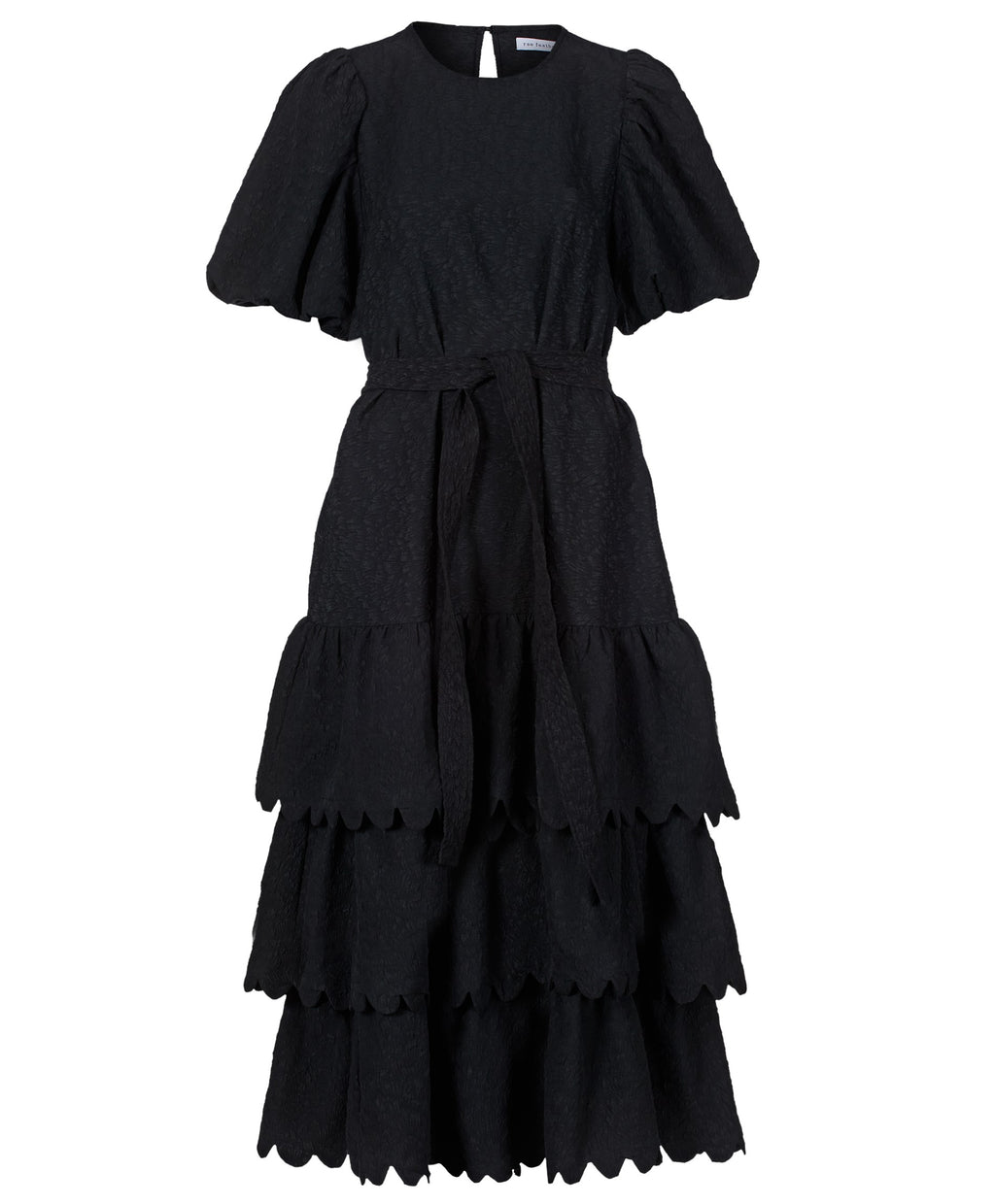 The Penelope Dress is a modern classic with a playful edge. In sleek black with a tie belt, this A-line silhouette features scalloped edge frills for a soft, feminine touch, while puff sleeves add just the right amount of drama. Perfect for day-to-night dressing, it’s an effortless go-to for any occasion.