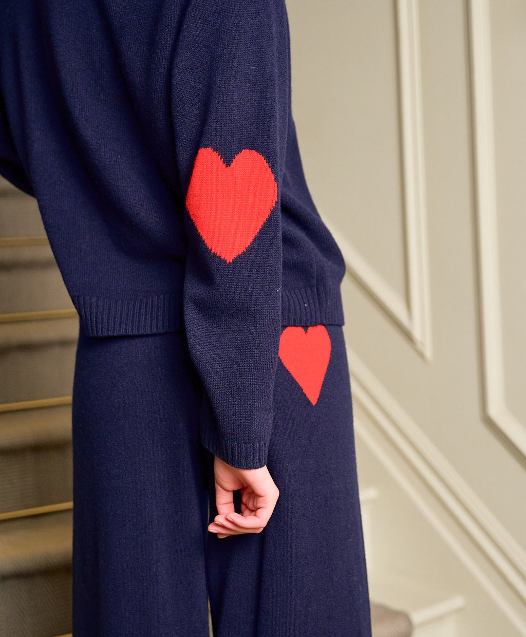 The Phoebe Set is the ultimate in relaxed luxury, crafted from 100% merino wool for exceptional softness and warmth. Designed with a relaxed, easy fit, it features a crew-neck sweater and wide-leg pants for effortless comfort and style. Playful heart intarsia details add a modern, feminine touch. Perfect for cosy days at home or elevated lounging.