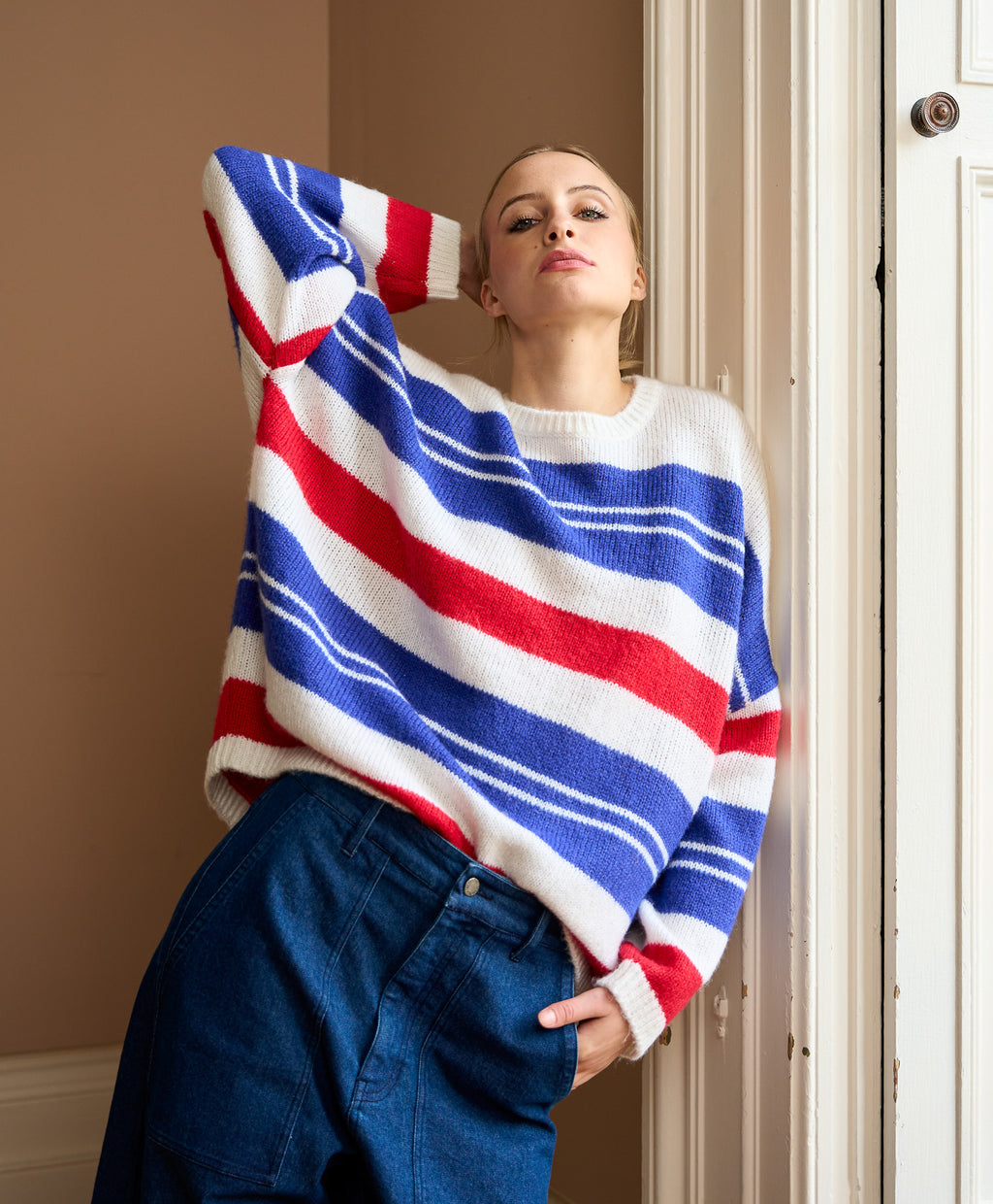 The Striped Sara is spun from a luxurious alpaca wool blend for softness and warmth. Bold stripes lend a playful edge to its relaxed, easy-to-wear silhouette. Lightweight yet cocooning, it’s the perfect layer for transitional days. A statement knit that balances comfort, colour, and effortless style.